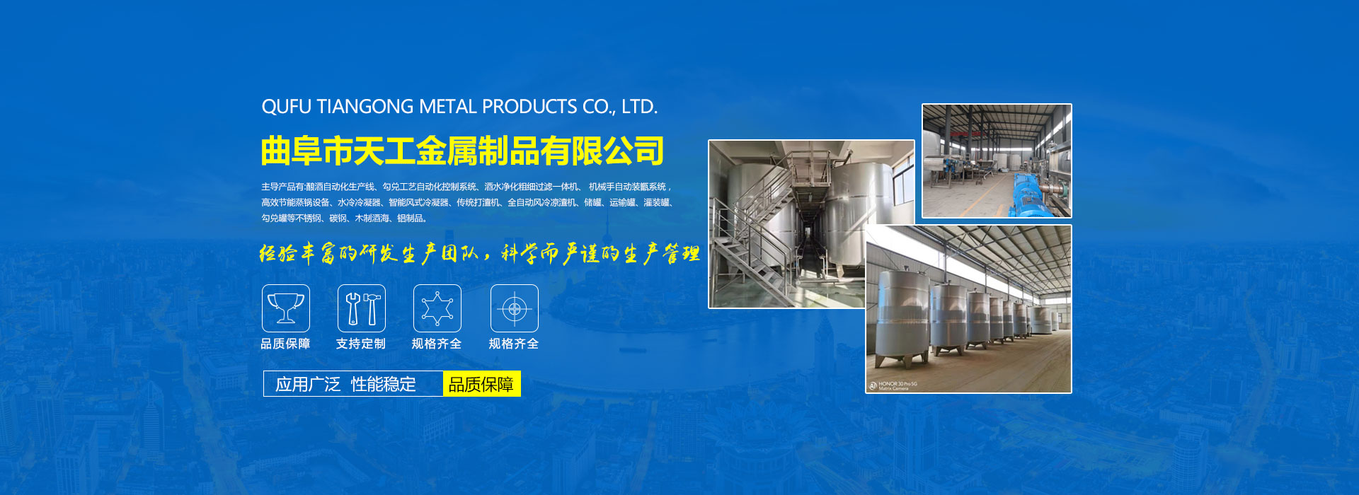曲阜天工金屬制品有限公司專業生產、銷售不銹鋼酒罐、不銹鋼發酵罐、不銹鋼釀造設備等,并提供產品相關圖片、報價、參數等信息。